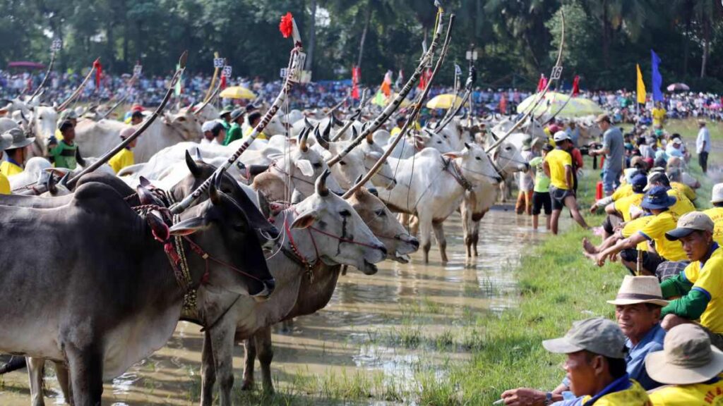 Không chỉ được xem những màn đua gay cấn đến từ các đôi bò và nài bò (người điều khiển), người dân cùng du khách còn được dịp hòa mình vào không khí lễ hội hừng hừng, nóng bỏng. Hàng chục nghìn người đổ về từ tứ phía, có thể là người dân các phum, sóc đến cổ vũ cặp bò của mình, có khi cũng là những người dân từ các huyện và các tỉnh khác đổ về, tất cả tạo nên một không khí cỗ vũ rộn ràng, cuồng nhiệt.