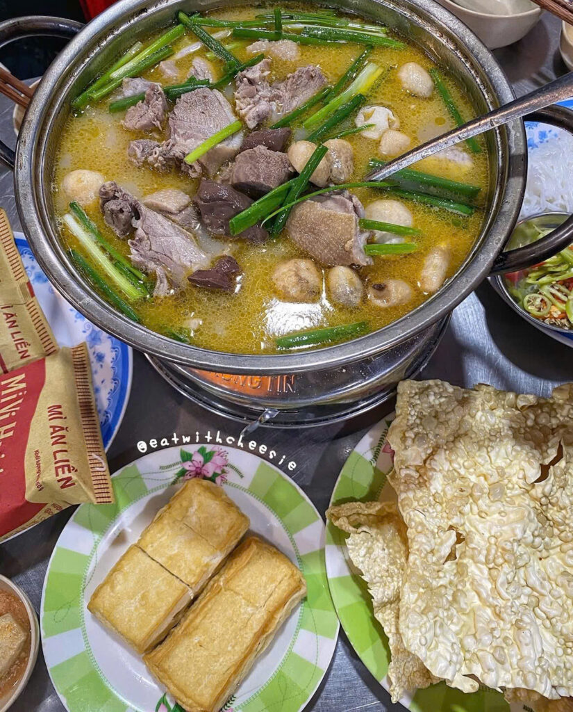 Lẩu vịt nấu chao Cẩm Tú là một trong những quán gây sốt trên TikTok. Thịt vịt nhiều, nước dùng đậm đà và topping lạ như chuối sáp siêu ngon. Quán ăn này cũng rất đông khách địa phương, phục vụ nhanh dù là trong giờ cao điểm. Đừng quen thử món chuối sáp luộc kèm lẩu điều mà ít nơi nào có phục vụ kèm.